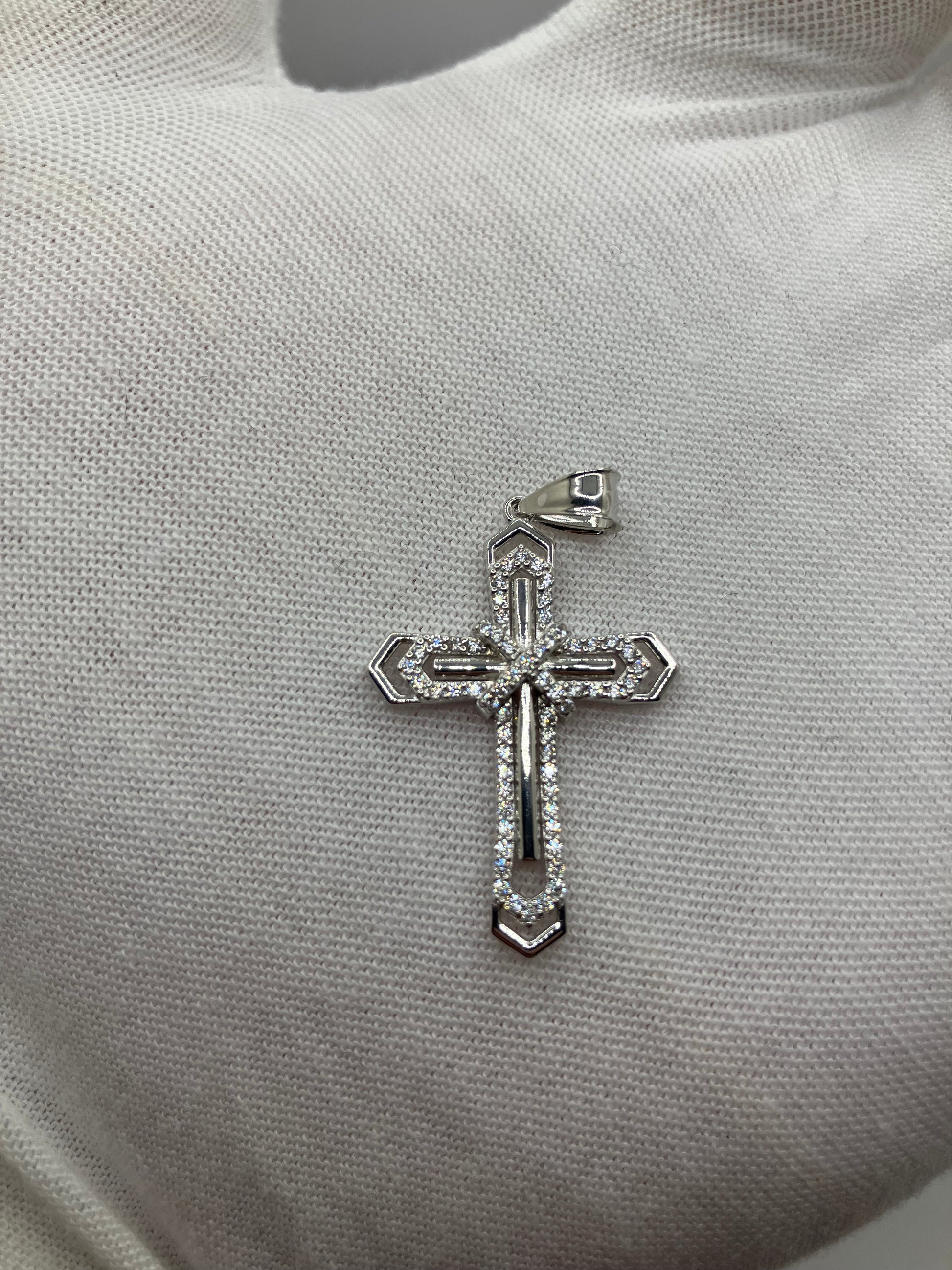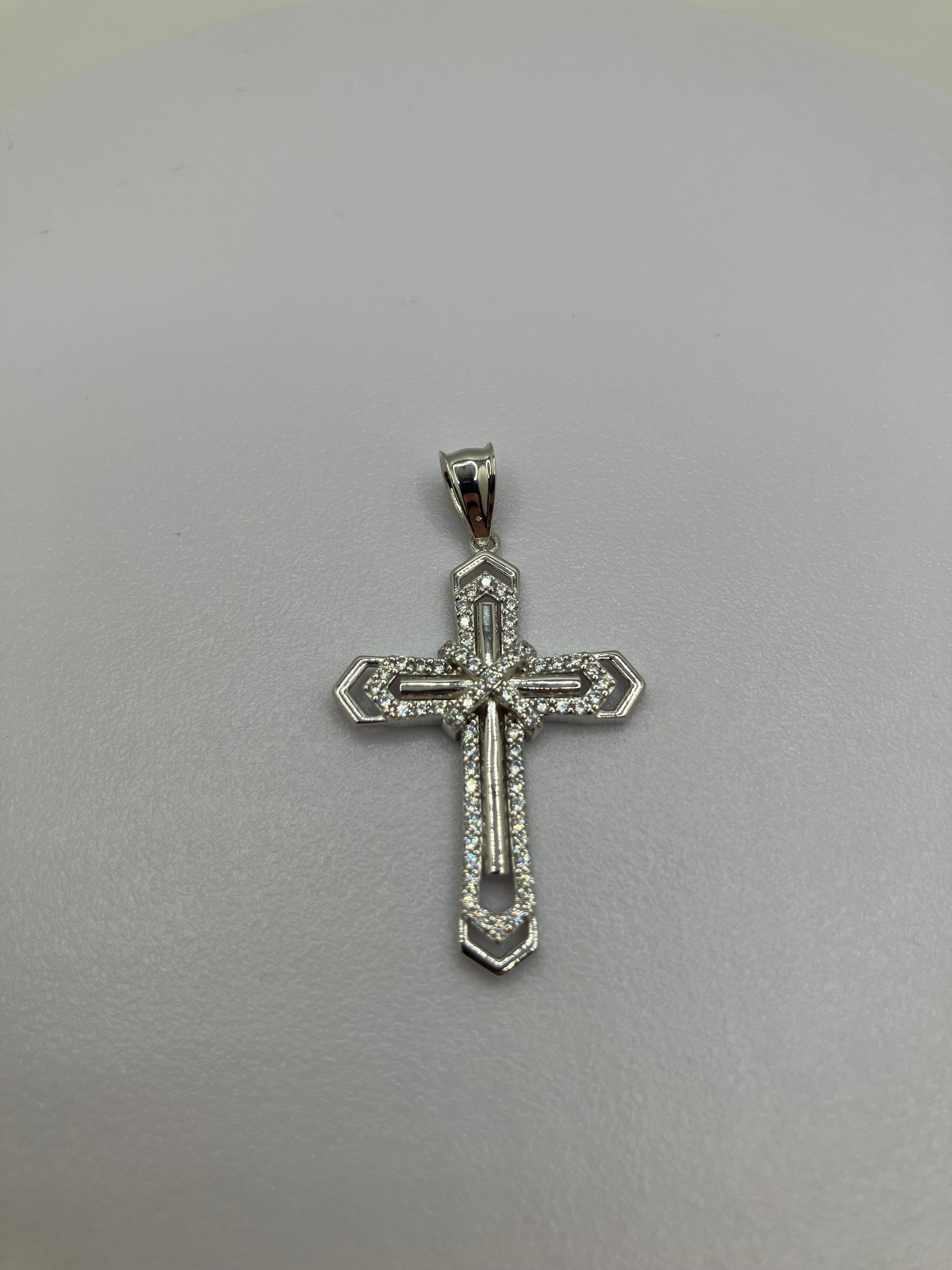 .925 Sterling Silver Cubic Zirconia Layered Cross Crucifix