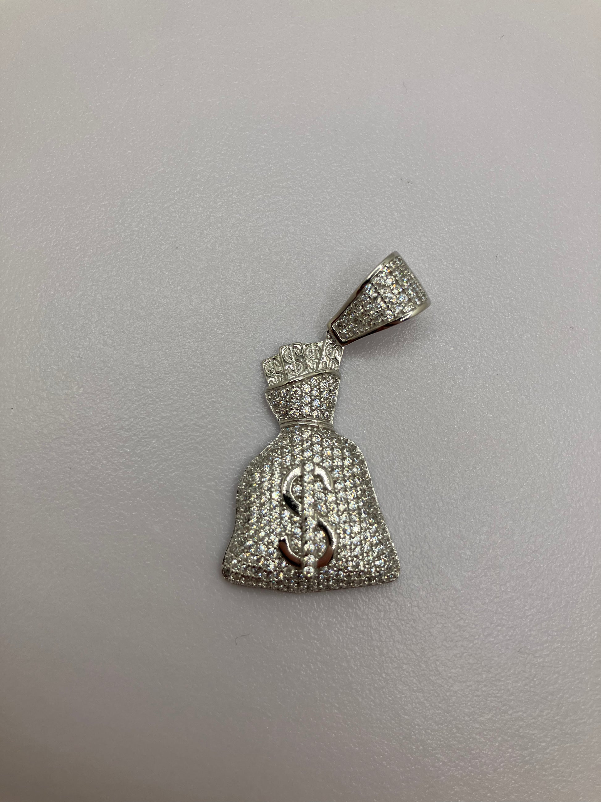 .925 Sterling Silver CZ Money Bag Pendant