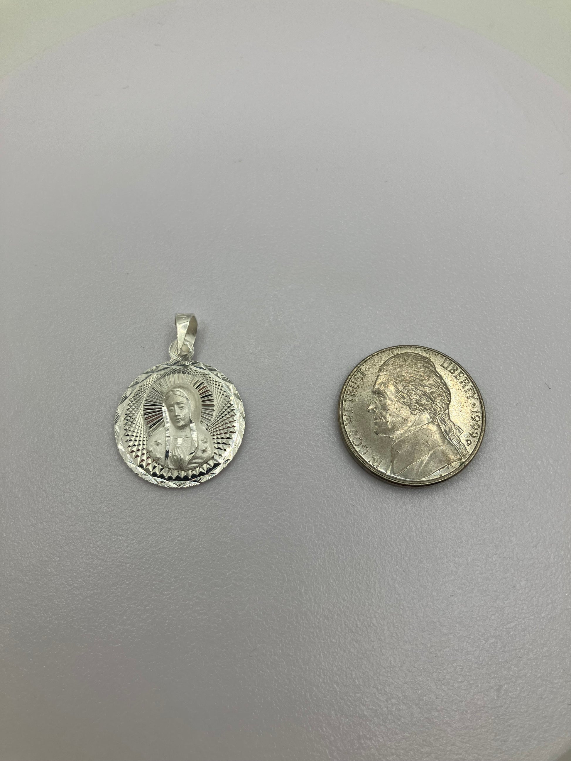 .925 Sterling Silver Diamond Cut Our Lady of Guadalupe Pendant