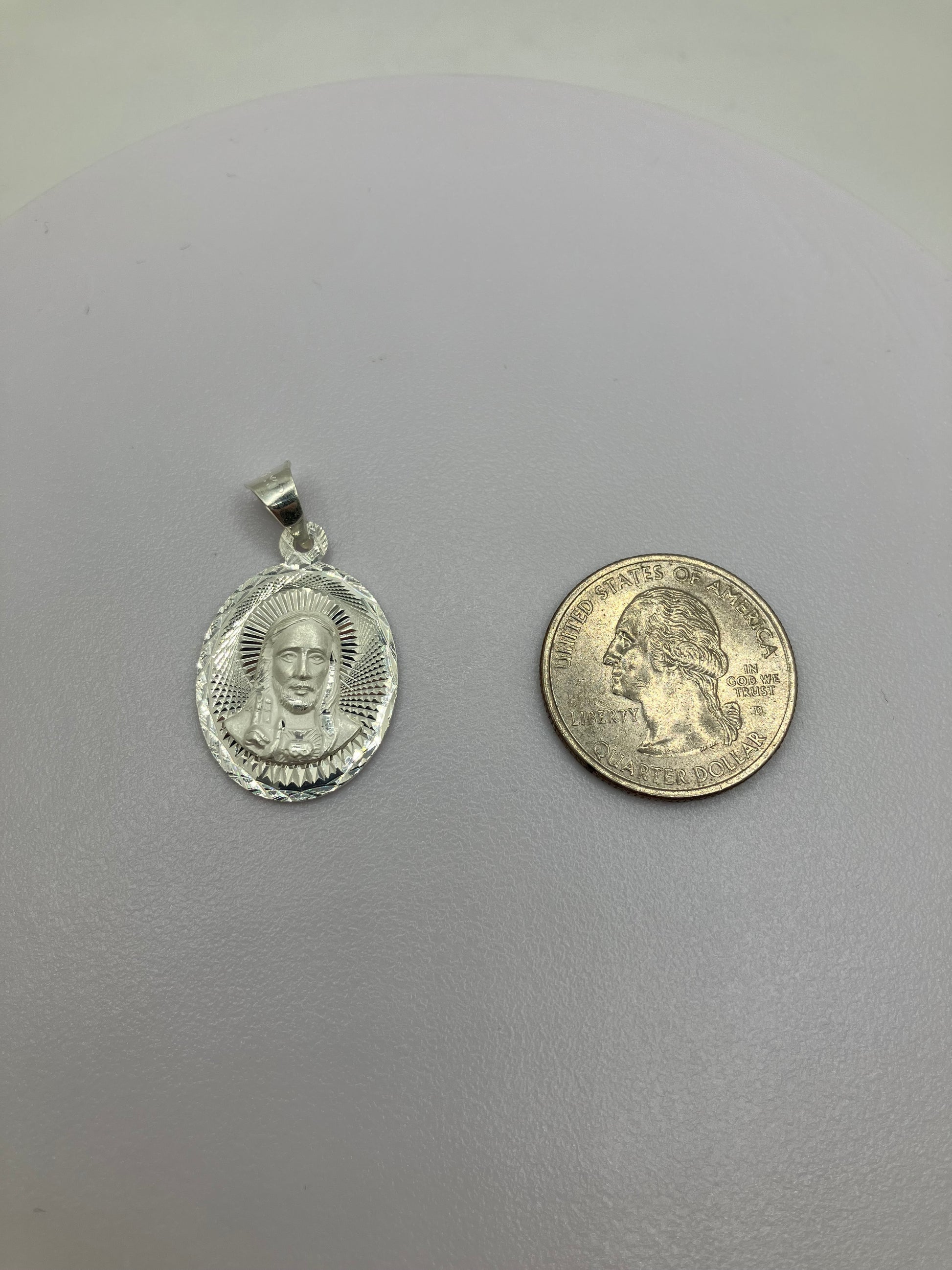 Expertly crafted from solid sterling silver, this medallion offers both durability and timeless elegance. The smooth, polished surface pairs beautifully with the textured cuts, making it suitable for everyday wear or special occasions. A meaningful symbol of faith and protection, this piece is perfect worn alone or layed with other chains.