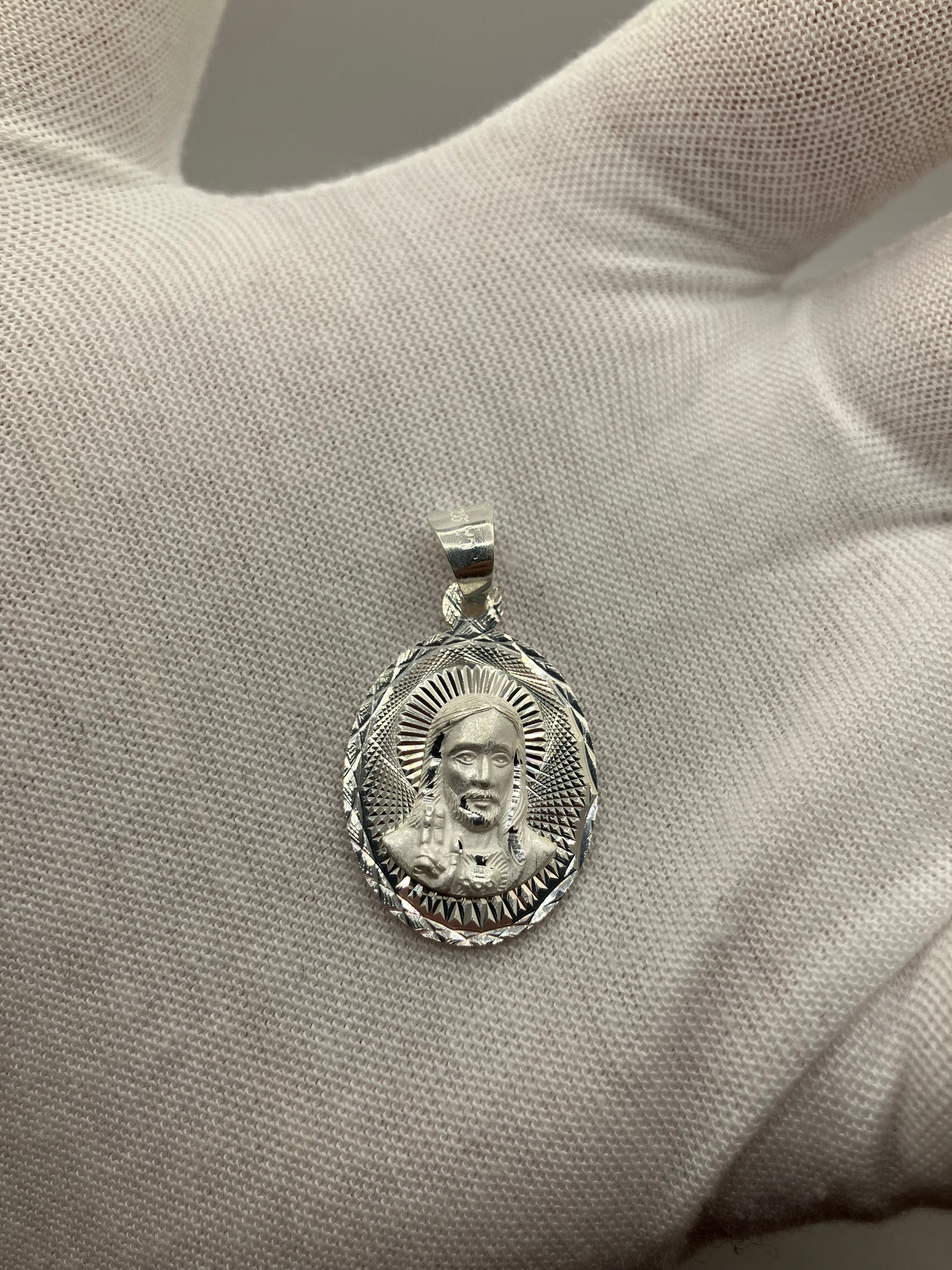 .925 Sterling Silver Jesus Medallion Diamond Cut
